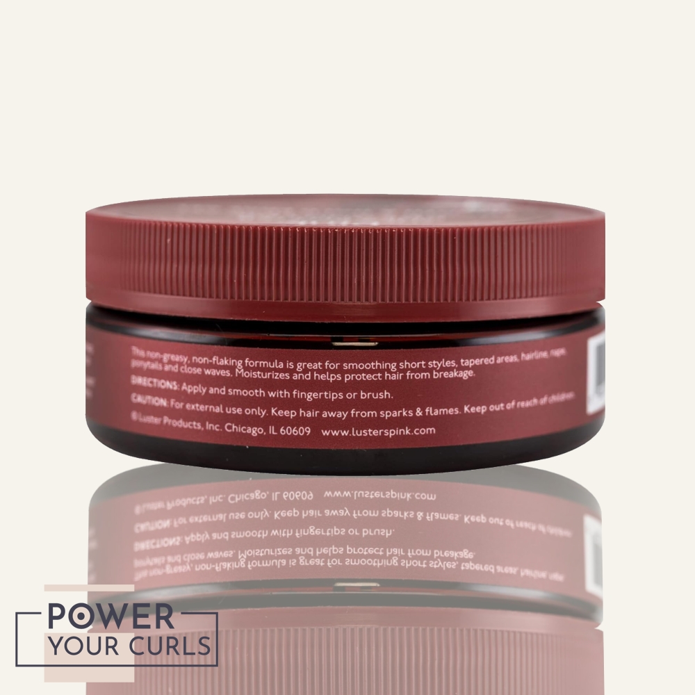 This non-greasy, non-flaking formula is great for smoothing short styles, tapered areas, hairline, nape, ponytails, and close waves. Moisturizes and helps protect hair from damage.